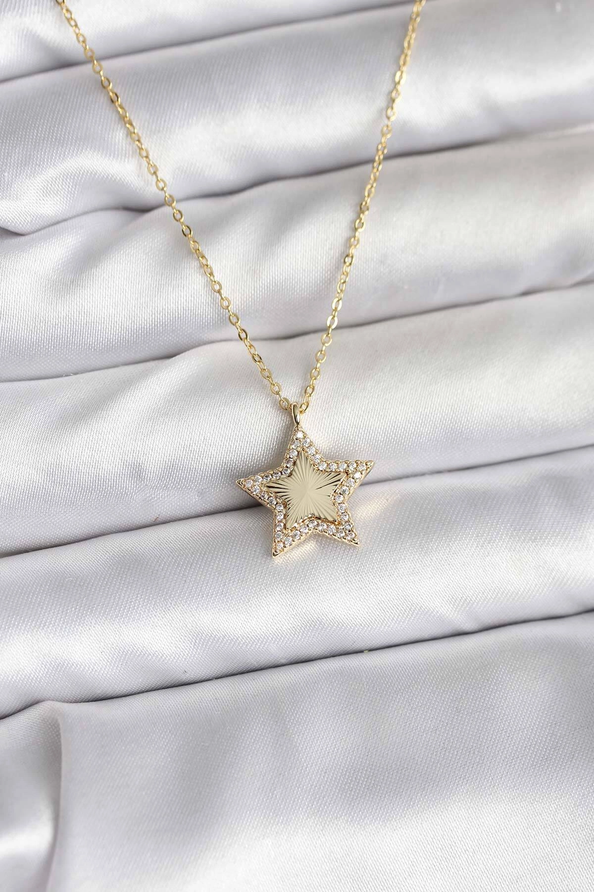 Pirinç Gold Renk Zincirli Yıldızlı Model Kadın Kolye